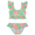 Add a splash of seaside charm with this frilled crop bikini. Both the top and bottoms feature seashell prints with frills, blending playful designs with beach-ready functionality. This set is perfect for young swimmers looking to make a stylish splash.