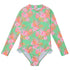 Ride the waves in this frilled surf suit, perfect for little ones who love keeping active. Designed specifically for fun in the sun, the breathable seashell fabric covers the skin for maximum protection. A back zip closure adds extra convenience, while the leg frills bring a dash of cuteness.