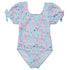 Dive into summer fun with this floral-themed puff sleeve swimsuit. Decked in daisies with puff sleeves that bloom with keyhole and bow details, its low scoop back ensures ease of movement. This suit combines the sweetness of summer flowers with the practicality needed for water play.