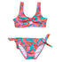Bright and bold, your girl will be making a splash at the pool in our fun Geo Melon print. This girls' crop bikini features ties on the top and bottoms and a keyhole cut-out at the front. Snapper Rock sustainable swimwear is made from REPREVE® recycled fabric, complete with home compostable packaging and recycled paper swing tags. Look good while doing great for the environment!