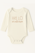 Our Hello I’m New Here long sleeve bodysuit in warm Clay Ink is the perfect way to welcome your little one to the world. Made from ultra-soft, GOTS-certified organic cotton, it’s gentle on newborn skin and thoughtfully designed for snuggles, first photos, and everything in between.