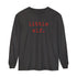 The Little Elf Long Sleeve Tee — festive, comfy, and made for those who do it all (and still make it merry). Crafted from soft, garment-dyed cotton, it feels perfectly broken-in from the first wear and offers a relaxed, unisex fit that’s easy to style up or down. Whether you’re baking cookies, wrapping gifts, or matching with your little elves, this tee brings comfort, cheer, and timeless holiday charm to every moment. The model is a regular size small and wearing a size XL for an oversized fit. Size up for an oversized look.