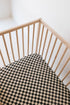 Introducing our Black and Tan Checkerboard Crib Sheet — a stylish and cozy addition to your baby’s nursery. Crafted from soft, breathable muslin cotton, it offers comfort for a peaceful night’s sleep while bringing a modern, sophisticated touch to your little one’s bedding.