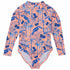 Surf's on with this vibrant toucan-print surf suit, specifically made just for the bigger kids who enjoy a bold look. It's designed with a sleek peach back zip closure and includes removable padding in the larger sizes, ensuring a comfortable fit and cool style for every ocean adventure.