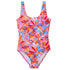 Slip into this women's swimsuit and embrace a getaway vibe, no matter where you are. The vibrant tropical print brings island life to your poolside lounging, while removable padding lets you customize your comfort level for a perfect, relaxing fit. Matching daughter swimsuits also in the collection.