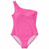 Step out in style with this chic one-shoulder swimsuit for women, made from textured pink terry fabric that feels as good as it looks. Perfect for those sunny beach days, this suit's elegant cut flatters your silhouette while matching options for your little one make for adorable mother-daughter moments.